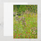 Tarjetas con la pintura al óleo de Gustav Klimt, Orchard con Rosas (1911). También conocido como Obstgarten mit Rosen, un huerto vibrante y verde es bellamente retratado. Las rosas rosas rosas y otras flores moradas y rojas bordean el camino del huerto. Un regalo maravilloso para los amantes del arte Art Nouveau y austriaco.