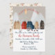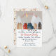 These invites feature a row of antique homes in front of mountains. Blue birds are picking what's left of the red berries on the bushes. It says "Happy Holidays" and below the houses you personalize it with your family name in a pretty script. The rest of the invitation invites your friends to your house for a holiday gathering and has the date and time, their address, and RSVP information.