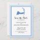 Invitación boda para su boda de Cape Cod. Mapa de Cape Cod con el corazón sobre Harwich, Massachusetts. COLORS en Hydrangea Blues con corazón. Si el esquema de color no es lo que querías, por favor avísenme y lo recrear para ti, pero por favor contáctame antes de hacer un pedido. Correo electrónico paula@labellarue.com ¡Feliz planeamiento de Bodas! Asegúrate de escoger tu material de cartón favorito para imprimirlo.