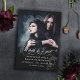 Elegante foto de Halloween o boda de gótico salven la fecha con la muerte de la muerte de la muerte de la muerte de la muerte de la muerte de la muerte de la muerte nos separamos en una escritura de caligrafía blanca y poco definida en tu foto. Agregue la información de su boda en blanco contra un gradiente negro en la parte inferior de la foto para hacer que el texto aparezca. Un detalle del cráneo también, en gris oscuro. ¡Personaliza con una foto! Guau, sus bodas invitados con este impresionante gótico guardan la tarjeta de cita con su foto y un cráneo.