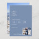 Este hermoso azul salvo la fecha seguro que hará feliz a sus invitados. Un diseño sencillo y clásico, con un toque moderno. ¡La foto de la parte de atrás es un gran placer para los invitados! Si desea seguir personalizando, por favor siéntase libre de enviarnos un mensaje.