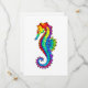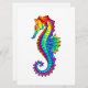 Arco de arcoiris, caballito de mar poligonal sobre fondo blanco. Tatuaje brillante.