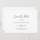 Esta hoja mínima gris oscuro horizontal salva la tarjeta de fecha es perfecta para una boda elegante. El diseño presenta una sencilla silueta de vegetación en gris carbón vegetal con un estilo minimalista clásico.