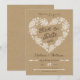 Elegante y casual, esta tarjeta de Guarda la Fecha es perfecta para cualquier amante de la naturaleza. Hojas de encaje estilizadas, piñas, bellotas, flechas y flores forman un corazón con un fondo de aspecto de papel kraft rústico. Personaliza con tu propio texto. Ilustración original de pj_design. Por favor, revisa mi tienda para ver más como esta.