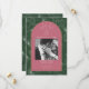 Diseño de arcos con arte en línea, ilustraciones de conchas marinas y fondo de hojas de palma. Color rosa y verde. Personaliza con tu propia foto de fecha.