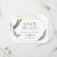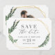 diseño moderno y audaz con un marco geométrico dorado y hermoso follaje de hojas en acuarela. Esta elegante colección rústica es un gran complemento para una boda de otoño o primavera y cuenta con todos los productos que necesitarás para tu día especial: fechas de guardado, invitaciones, planificadores de mesa y más.