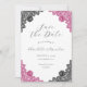 Complement your hot pink and black wedding party with these beautiful save the date cards featuring elegant floral lace.