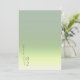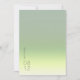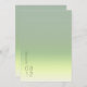 El fondo de todas las piezas de este conjunto de bodas minimalistas es un gradiente de colores llamativo, desde verde salvia suave hasta amarillo pálido y marfil. La tarjeta de boda "Save the Date" que se muestra aquí presenta un diseño elegante y moderno y una fuente sans serif contemporánea para añadir a su sobria elegancia. Agregue fácilmente sus nombres y fecha de boda utilizando la plantilla proporcionada. Busque ID741 para ver el conjunto completo de productos coincidentes en Spring Meadow o elija una de las otras combinaciones de degradados disponibles para adaptarse a su paleta de color boda.