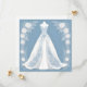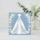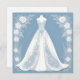 Elegante vestido de novia sobre fondo azul invitación de boda o ducha