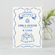 Anuncie su día especial con una elegancia atemporal utilizando nuestra tarjeta de "save the date" azul y blanca, inspirada en diseños franceses vintage. Cada tarjeta está ilustrada a mano con exquisitos tonos azules, capturando la esencia de la artesanía clásica francesa mientras infunde un encanto peculiar y adorable. Esta tarjeta de "save the date" moderna y estéticamente agradable establece el tono perfecto para una celebración de boda sofisticada y memorable.