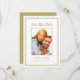 El diseño moderno y sencillo del marco de fotos Save The Date incluye tu imagen favorita de compromiso enmarcada por un sofisticado marco de color de tono dorado sobre un fondo blanco y nítido. Personalice y comparta sus detalles de compromiso y boda con sus invitados en elegantes letras y guiones. El diseño se completa con un moderno marco doble. La parte posterior de la tarjeta es color de tono dorado sólido.(Para la mejor ubicación de la imagen, utilice una herramienta de edición de fotos para centrar y recortar ANTES de subir al sitio web de Zazzle.) Este diseño de configuración de retrato (la altura es mayor que la anchura) funciona muy bien con fotos de primer plano y fotos rectangulares de largo recorrido de usted y su prometido. ¡Elige tu favorito! Póngase en contacto con invitationsuites@gmail.com para obtener preguntas o solicitudes de personalizados.