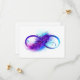 Símbolo de infinito con una hermosa pluma pintada en colores brillantes púrpura y azul sobre fondo blanco.