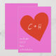 Anuncia tu día especial con esta tarjeta de "Save the Date" de iniciales con corazón atrevido, que presenta un corazón rojo vibrante sobre un fondo rosa brillante, personalizado con tus iniciales. Con tipografía moderna y juguetona, esta tarjeta establece el tono para una celebración divertida y romántica. Incluye la fecha de tu boda, ubicación y sitio web para mantener a tus invitados informados y emocionados. Perfecta para parejas que aman diseños atrevidos y coloridos, esta tarjeta es una forma única de compartir tu historia de amor y asegurarte de que todos guarden la fecha.