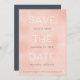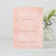 Moderno y simple guardar la tarjeta de fecha en las funciones sans serif y cursiva en blanco crudo, con sus nombres, fecha de boda y ubicación intercalados con "guardar la fecha". Un lavabo acuático de color rosa pálido y rosa chispeante aporta un encanto romántico y suave. Personaliza con tu información de invitación y/o sitio web de bodas a lo largo de la parte inferior.