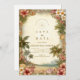 Celebrate your wedding day with timeless tropical elegance. This romantic design features lush hibiscus blooms, soft palm leaves, and painterly botanical details layered over a warm, vintage-inspired background. The refined typography and airy island palette create a sophisticated destination wedding feel that’s perfect for coastal venues, tropical resorts, or summer celebrations.