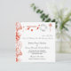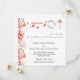 Hermosa tarjeta de aviso de boda diseñada especialmente para una boda en Tenerife, Fuerteventura, Gran Canaria, Lanzarote, La Palma, La Gomera, El Hierro, La Graciosa, Alegranza, Isla de Lobos, Montaña Clara, Roque del Este o Roque del Oeste. Imágenes del mapa de las Islas Canarias, palmera y volutas laterales elegantes de estilo retro en tango de mandarina. El texto del matasellos dice: Destino Islas Canarias. Fácil de personalizar, simplemente ponga sus datos relevantes. Cada Aviso de Boda de las Islas Canarias viene completo con un sobre blanco.