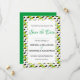 Elegante invitación de GUARDA LA FECHA con el contorno del mapa de la bandera de JAMAICA en un patrón de baldosas en el fondo. El mensaje de las Escrituras dice 'Y los dos se convertirán en uno'. El diseño se puede personalizar completamente con su propio mensaje y para sus celebraciones especiales, por ejemplo, cumpleaños, aniversarios, días de la independencia, días del patrimonio, reuniones familiares, etc. La línea de puntos es para que agregue el nombre(s) de su(s) invitado(s) o elimine según sea necesario. Papelería a juego disponible. Una forma maravillosa de celebrar su fe y su bandera en su día especial.