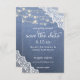 Envíe una tarjeta para guardar la fecha para que sus invitados estén listos para celebrar a su boda o fiesta con sus jeans, encaje y luces de cuerda floral del país para guardar la tarjeta de fecha.