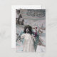 Una postal de Navidades franceses de dominio público. Presenta a un chica vestido de ángel Navidad que lleva regalos.