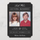 ¡Envíe una "foto de la vieja escuela" de estilo moderno para salvar las fechas, usando las fotos de su infancia! El color de fondo se puede personalizar fácilmente a cualquier color que desee, tanto en la parte delantera como en la trasera. Mostrado: negro mudo. Diseño moderno de rayas blancas en la parte posterior.