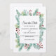 Establece el tono para tu celebración invernal acogedora con esta tarjeta de Guardar la Fecha rústica que presenta un fondo de papel kraft, ramas de pino de acuarela, bayas rojas y follaje de hoja perenne. Un diseño encantador para bodas de Navidad, ceremonias forestales o celebraciones invernales rústicas. Personalizado sin esfuerzo con sus nombres, fecha y ubicación de la boda.