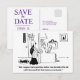 La divertida vintage ahorra la tarjeta de fecha, ilustracion blanco y negro con texto divertido.