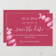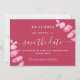 Un moderno y elegante Salven la Fecha para un boda. Un fondo de magenta decorado con tallos de eucalipto, brotes. Personalice y agregue una fecha y nombres. El texto: Save the Date se escribe con un gran guión de estilo escrito a mano.