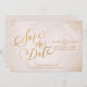 La caligrafía con letras de oro rosa de imitación de glamour purpurina ahorra el diseño de dátiles y los puntos de oro rosa confetti sobre el fondo color rosa pastel del agua, efecto bonito shimmer faux metálico rosa de oro efecto purpurina, moderno, moda, elegante y elegante, perfecto para bodas vintage o bodas de primavera. Personalizado tu propia tarjeta de fecha para tu juego de invitación de boda. Vea todas las piezas coincidentes de esta colección de caligrafía de purpurina dorado de color rosa.