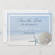 Estas tarjetas de fecha ahorradas son perfectas para cualquier pareja que planee una elegante boda en la playa. El diseño se compone de un dólar de arena crema y una estrella de mar azul claro con un fondo de playa azul oscuro. El diseño se completa con un delicado borde de color arena. El diseño sencillo y fresco puede ser personalizado para su evento especial y será la invitación perfecta para cualquier fiesta con temática playera, incluyendo duchas de novias, compromisos, duchas de bodas, fiestas de cumpleaños y mucho, mucho más.