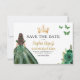 Anuncie su día especial con una encantadora Princesa Verde Esmeralda Quinceañera Guardar la invitación de la fecha. Con una paleta de colores verde esmeralda y detalles elegantes, esta invitación marca el tono para una celebración real. Adornado con delicados acentos para una princesa, captura perfectamente la magia de tu próxima quinceañera. Este diseño atemporal invita a los huéspedes a marcar sus calendarios y a prepararse para un día inolvidable lleno de belleza, alegría y recuerdos apreciados mientras celebran su 15 cumpleaños con estilo.