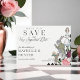 Haga que su invitado marque sus calendarios para su fecha muy importante con nuestro hermoso diseño vintage de "Alicia en el País de las Maravillas" para guardar la fecha de la boda. Perfecto para una boda con tema de Alicia en el País de las Maravillas. Hemos restaurado meticulosamente las icónicas ilustraciones vintage de Alicia en el País de las Maravillas dibujándolas a mano y dándoles vida con hermosos tonos de acuarela. El patrón de tablero de ajedrez en negro y blanco se incorpora maravillosamente en el diseño junto con nuestras flores de acuarela al óleo dibujadas a mano. El reverso presenta nuestras flores pintadas al óleo dibujadas a mano junto con un audaz patrón de tablero de ajedrez en blanco y negro.