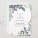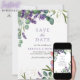 Sorprenda a sus huéspedes con esta elegante salvedad de la fecha con hermosas flores de lavanda y hojas de eucalipto con el código QR para el sitio web boda. Simplemente agregue los detalles de su evento en esta plantilla fácil de usar y adorne esta tarjeta con sus fotos favoritas para convertirla en una única tarjeta personalizada y guardar la tarjeta de fecha.