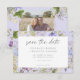 Announce your day with this Lavender Wildflower Garden Romantic Wedding save the date photo card, featuring delicate watercolor florals on a light lavender purple background. Perfect for a spring or summer garden wedding, this beautiful design offers a whimsical and natural aesthetic. This romantic invitation is fully customizable and sets a lovely, soft tone for your celebration. Created by Simply Farmhouse Press.
