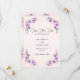Celebra tu día especial con esta acuarela de ensueño, salva la fecha. Los exuberantes arreglos de rosas de lavanda con un fondo de color negro, acentuados con toques de vegetación, aparecen como si estuvieran pintados a mano en la tarjeta. Las obras de arte suaves y texturadas crean una estética serena y femenina, mientras que una disposición de texto moderna y limpia ofrece un contraste pulido. Esta suite, con un sobre lila o rubor y una banda de sonido opcional, ofrece a sus huéspedes un tono romántico y caprichoso. Esta invitación a la boda es parte de un conjunto completo.