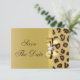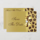 Tarjetas elegantes personalizadas de oro para "save the date" para bodas con un hermoso patrón de piel de leopardo marrón y bronceado impreso, un lazo y cinta impreso brillante dorado y una bonita joya de diamante impreso brillante. Estas invitaciones elegantes, glamorosas y de moda están decoradas en ambos lados. Invitaciones hermosas, chic, modernas y de moda. Tenga en cuenta: todas las invitaciones en Zazzle tienen imágenes impresas planas. El texto, la fuente y el color de la fuente se pueden personalizar. Si necesita ayuda para personalizar su producto, por favor contácteme a través de mi tienda. Estaré encantado de ayudar. Tengo productos que combinan en mi tienda.