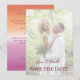 Lesbian wedding save the date card for two brides featuring the lesbian pride flag gradient—soft pink blending to warm orange—with photo on front and details on back. The front showcases your favorite engagement or pre-wedding photo with your names and "Save the Date" in elegant script overlay. The back features the full gradient with personalized message, wedding date, location, and wedding website URL. Available for print or instant download for those who prefer to print locally, offering cost savings, flexibility, and control over paper quality. Perfect for two brides who want a clean, simple announcement that reflects their love and pride. All text elements are fully editable and ready to personalize. For customization support, please email: remidevandesigns@gmail.com LoveOutLoudStudio©.