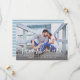 Anuncia tu boda con estilo con estas modernas tarjetas de aviso de "save the date" que presentan tu foto de compromiso con un diseño de superposición de escritura a mano que es elegante y juguetón. Incluye texto personalizado moderno que se puede personalizar en la parte frontal con todos los detalles importantes, junto con un patrón coordinado de rayas horizontales dibujadas a mano en la parte trasera con un color de fondo azul polvoriento (se puede modificar). Nota, el filtro de gradiente de foto oscura se puede eliminar.