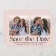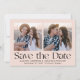 Sencilla y moderna, ahorra las tarjetas de fecha con dos de tus fotos favoritas en la parte delantera. "Save the Date" (Guardar la fecha) se muestra debajo en una fuente vintage moderna de color negro con un fondo ondulado. Personalice la parte delantera de la foto moderna para guardar la tarjeta de fecha añadiendo sus nombres, fecha de boda y ubicación del boda. El minimalista guarda la tarjeta de fecha se invierte para mostrar un diseño delgado de rayas diagonales blancas con un fondo de color o color de su elección.