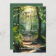 Bosque encantado Ahorre la tarjeta Date con un camino iluminado por el sol en un bosque con brillantes luces de hadas. En la parte de atrás hay espacio para la foto de su personalizado.