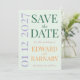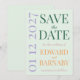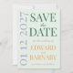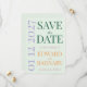 Comparte las noticias de tu boda con esta tarjeta de aviso previa fresca e invitante que presenta un fondo verde suave salvia con acentos de lavanda y amarillo de caléndula. El diseño minimalista resalta los números de fecha de gran tamaño detrás de una tipografía elegante, que combina mayúsculas verdes bosque con escritura rosa polvorienta. Ideal para celebraciones de bodas inspiradas en la naturaleza o en jardines con un ambiente alegre y botánico.