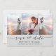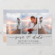 Elige las mejores fotos de tu sesión o de tus fotos favoritas de los dos para guardar la fecha. Las palabras que guardan la fecha están escritas a mano para darle un toque personal a la tarjeta. La parte frontal tiene 3 imágenes y la parte posterior tiene una imagen grande con un filtro blanco encima.