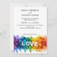 Elegante, evocador y con un orgullo radiante, la invitación a la boda de amor marca el tono para una celebración llena de corazón. El diseño se abre con un mensaje significativo anunciando tu alegre ocasión: "Jessica Anderson y Michaela Harris están encantados de anunciar su día especial: [fecha aquí]" La fecha destacada que aparece justo debajo es la fecha boda, claramente marcada para que los invitados puedan ahorrar y apreciar. Anclar la parte inferior de la tarjeta es un cautivante salpicón de color de la colección Painted With Love: una ráfaga de vibrantes pinceles con audaces matices de orgullo LGBTQ+, con la palabra LOVE destacando en blanco crujiente. Esta obra de arte dice mucho, lo que refleja la unidad, la expresión y la belleza de los momentos compartidos. Una línea sutil en la parte inferior brinda espacio para compartir que pronto se vienen más detalles, agregando un toque de anticipación para la celebración que se avecina. Voltea la tarjeta, y la historia continúa: el reverso incluye tus nombres, la fecha y el lugar de la ceremonia, asegurando que los invitados estén bien informados y listos para celebrar con ustedes. 🌈 Diseñada para las parejas que quieren que su papelería hable no sólo de fechas y lugares, sino de orgullo y unión, esta invitación es un verdadero placer. Con el espacio de texto en personalizable y las impresionantes obras de arte, honra tu viaje con color, creatividad y amor.