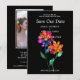 Celebrate your love story with this heartfelt Save the Date card from the Petals and Pride Collection. Featuring a personal photo framed by a sleek black border and radiant rainbow florals, this design blends intimacy with bold, joyful style.