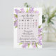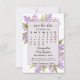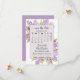 Esta boda, salvo la tarjeta de cita, es simple, rústica, elegante y hermosa. Presenta un calendario de personalizables con caligrafía de escritura de encaje en un marco violeta o lavanda claro rodeado de racimos de flores de lila pintadas a mano sobre un fondo blanco. El título dice: Guardar la caligrafía de la secuencia de comandos Date in lacy con espacio para los nombres de la pareja, la fecha, una dirección URL y ubicación opcional del sitio web. La parte trasera es de color lavanda más oscuro, con un pequeño ramo atado con un arco blanco. Una forma maravillosa de hacer que sus amigos y familiares sepan de su próximo boda.