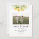 Tarjeta de Limon Verde Cítrico Save The Date con Foto. Esta Invitación de Despedida de Soltera elegante y con estilo presenta un hermoso Limon Verde Cítrico pintado a mano con acuarela. Encuentre artículos coincidentes en la Colección Floral de Limón y Greenery Cítrico.
