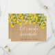 Esta bonita tarjeta de cambio de fecha de despedida de soltera con limones rústicos y vegetación puede ser personalizada con la información de su aplazamiento en un fondo kraft rústico. Una forma divertida de mantener a su familia y amigos actualizados. Diseñada por Thisisnotme©