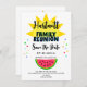 Diversión de verano, comida de verano, sol de verano todo en una invitación de reunión familiar Save the Date. Brillante, colorido y luminoso sol, y una gran parte de la sandía. Que tengan una gran reunión. ¡Toma muchas fotos!