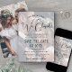 Anuncie la alegre noticia de su próximo fiesta de artículos con una única foto personalizado superpuesta "Lo hacemos, lo hicimos, ¡nos fugamos!" guarde las invitaciones de fecha. Toda la redacción es sencilla de personalizar para cualquier tipo de celebración, como una boda, una ceremonia de renovación del voto, un boda secuencial o un fiesta de primer aniversario. Incluya la fecha del matrimonio, la ubicación, el sitio web o cualquier otro detalle importante de su elección. (IMAGEN PLACEMENT TIP: Una manera fácil de centrar una foto exactamente como quieres es recortarla antes de subirla al sitio web de Zazzle.) El elegante diseño en blanco y negro de la moda presenta dos fotografías de la pareja recién casada, la moderna y moderna caligrafía de escritura a mano y la elegante tipografía de máquina de escribir. ¡Felicitaciones a la novia y al novio!