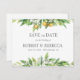 Diseñada para coordinar con nuestra colección de bodas L'Orangerie, esta elegante tarjeta botánica para guardar la fecha incluye un spray de flores neroli y hojas verdes junto con los detalles de fecha guardados en letras grises suaves. Una carta elegante para definir el tema