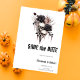 Rosas góticos negros con cráneos sobre fondo blanco. Hermosa invitación que se puede personalizar con tu nombre. Seleccione el botón "personalizar" para cambiar el estilo, color y tamaño del tipo de letra.